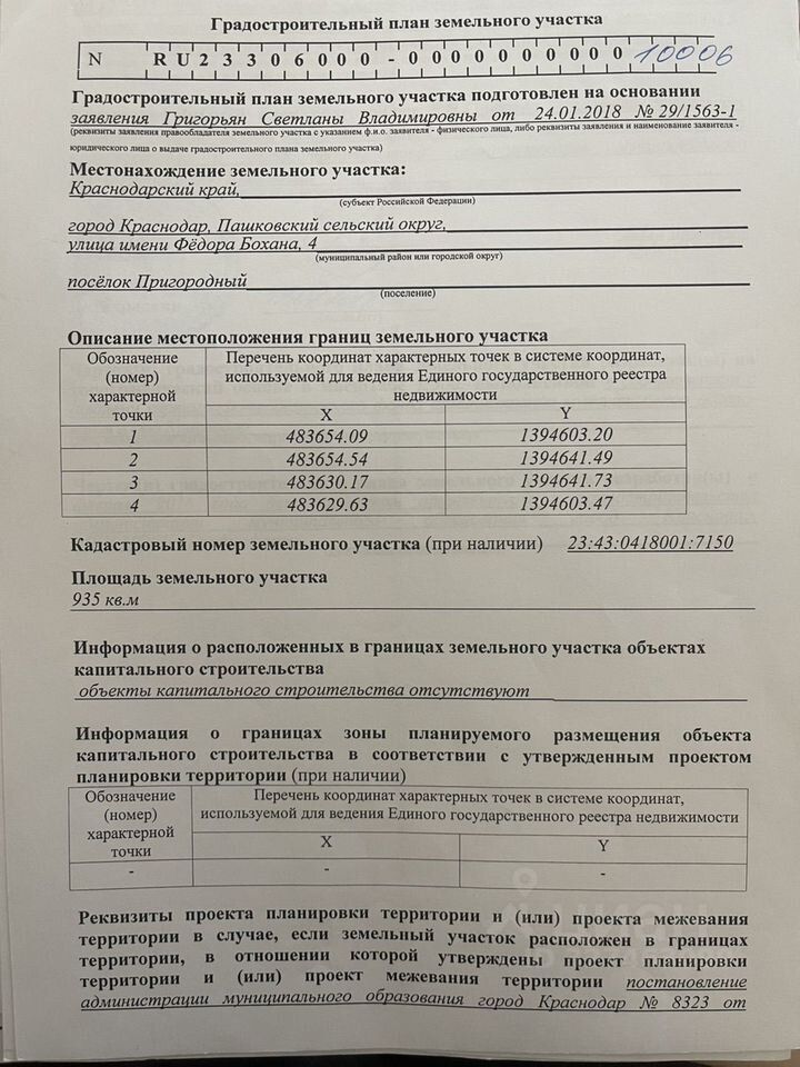 Характеристики участка: