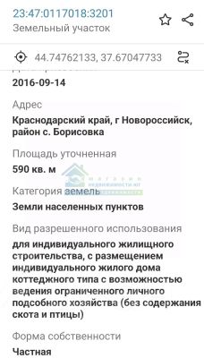 Продается земельный участок с кадастровым номером 23:47:0117018:3201 в с. Борисовка.