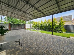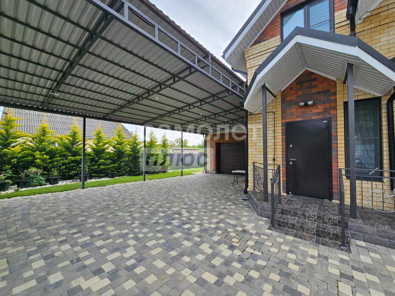 Арт. 132712047 Загородный дом с гаражом находится в 16 километрах от Черноморского побережья, в самом центре станицы Гостагаевская. Он расположен в благоустроенном жилищном комплексе с асфальтированными дорогами.