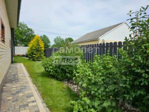 Участок благоустроен профессиональной командой ландшафтных дизайнеров. Здесь уложен рулонный газон, обустроен дренаж и проведен автополив. Двор вымощен тротуарной плиткой, нет ни одного заброшенного уголка.