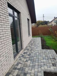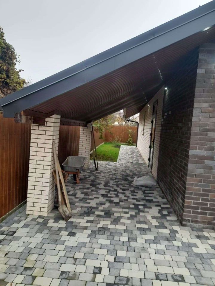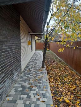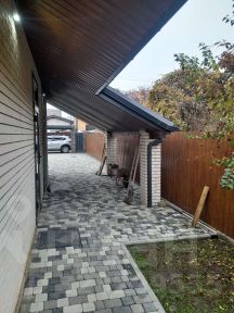- Во дворе: аккуратная плитка, хозяйственный навес, автоматические роллетные ворота - удобно и безопасно.
