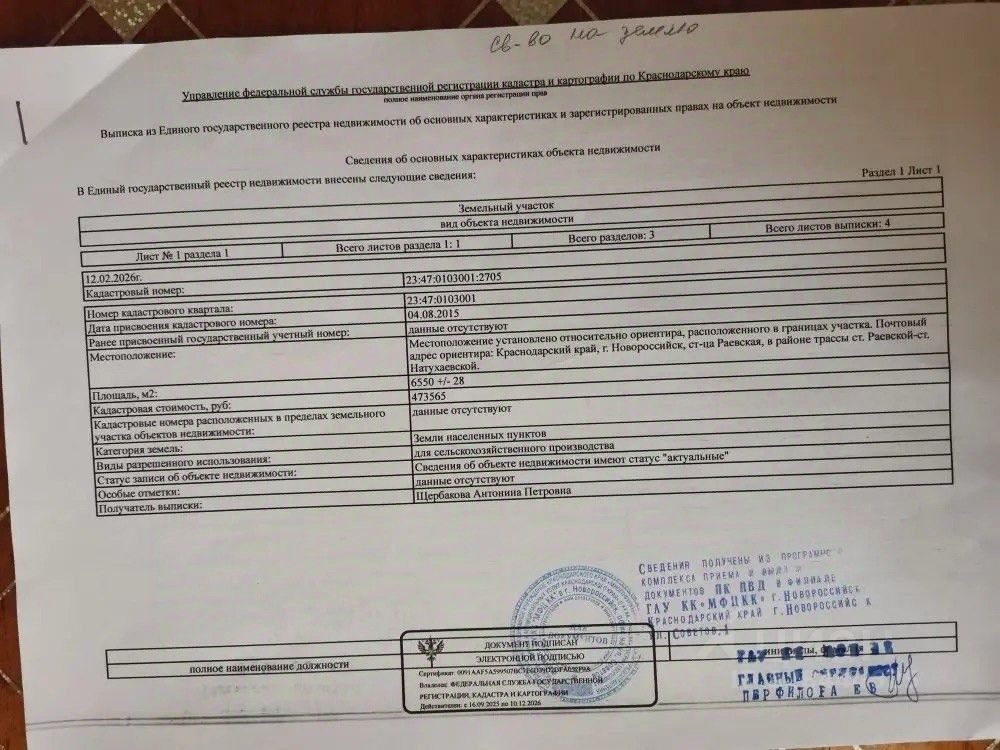 Продаю земельный участок по адресу: городской округ Новороссийск, ст-ца Раевская, в районе трассы ст. Раевской-ст, Натухаевской. Участок находится в границах населенного пункта. Участок с выходом на дорогу. Площадь земельного участка 6550 кв.м. Объекты капитального строительства на участке отсутствуют. Собственник. При необходимости можем предоставить градостроительный план и сведения информационной системы. 320 000 тысяч рублей за сотку, Возможен ТОРГ!