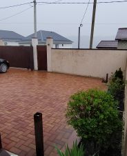 Участок огорожен забором с откатными воротами. Во дворе выложена брусчатка, площадка для 3-х автомобилей.