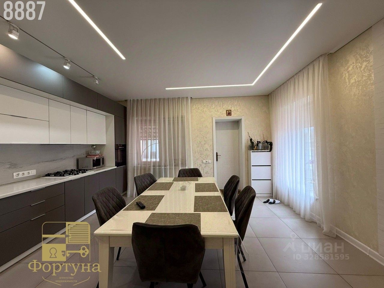 Просторная кухня-гостиная с выходом под навес — идеальное место для семейных ужинов и вечеринок на свежем воздухе
