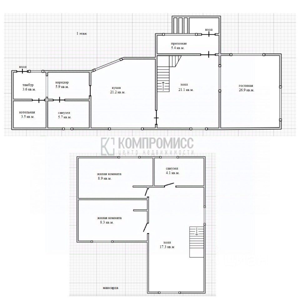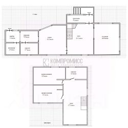 В доме 3 спальни, кухня, прихожая, два санузла, котельная, коридор, холл, тамбур;