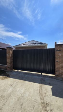 Участок 4,2 сотки, ИЖС, правильной прямоугольной формы, улица широкая, есть забетонированная придомовая территория с оформленной клумбой. По периметру участка забор, ворота откатные, калитка, по фасаду кирпичные колонны с освещением