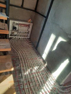 Дом в процессе ремонта , уже проведена разводка отопления , на втором этаже тёплый пол, на третьем установлены радиаторы. На втором и третьем этаже выровнены полы, на полах стяжка, выровнены и оштукатурены стены , дом отапливается от газового котла, электричество 15 кВт, трехфазное