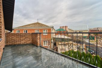 балкон на втором этаже, где приятно начинать утро с кофе и видом на спокойный частный сектор.