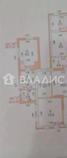 В доме три комнаты, две изолированные и одна проходная: 11,4 кв. м , 10 кв. м и 6.3 кв. м, кухня 9,6 кв.м, санузел 2,9 кв. м и коридор 2,5 кв.м.