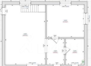 На первом этаже: большая гостиная с панорамным окном и выходом во двор, комната, санузел, коридор.