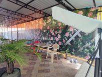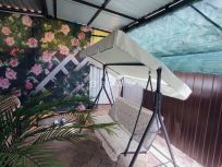 Территория двора занимает 1,8 соток земли. Двор полностью выложен плиткой, имеется навес на несколько машин.