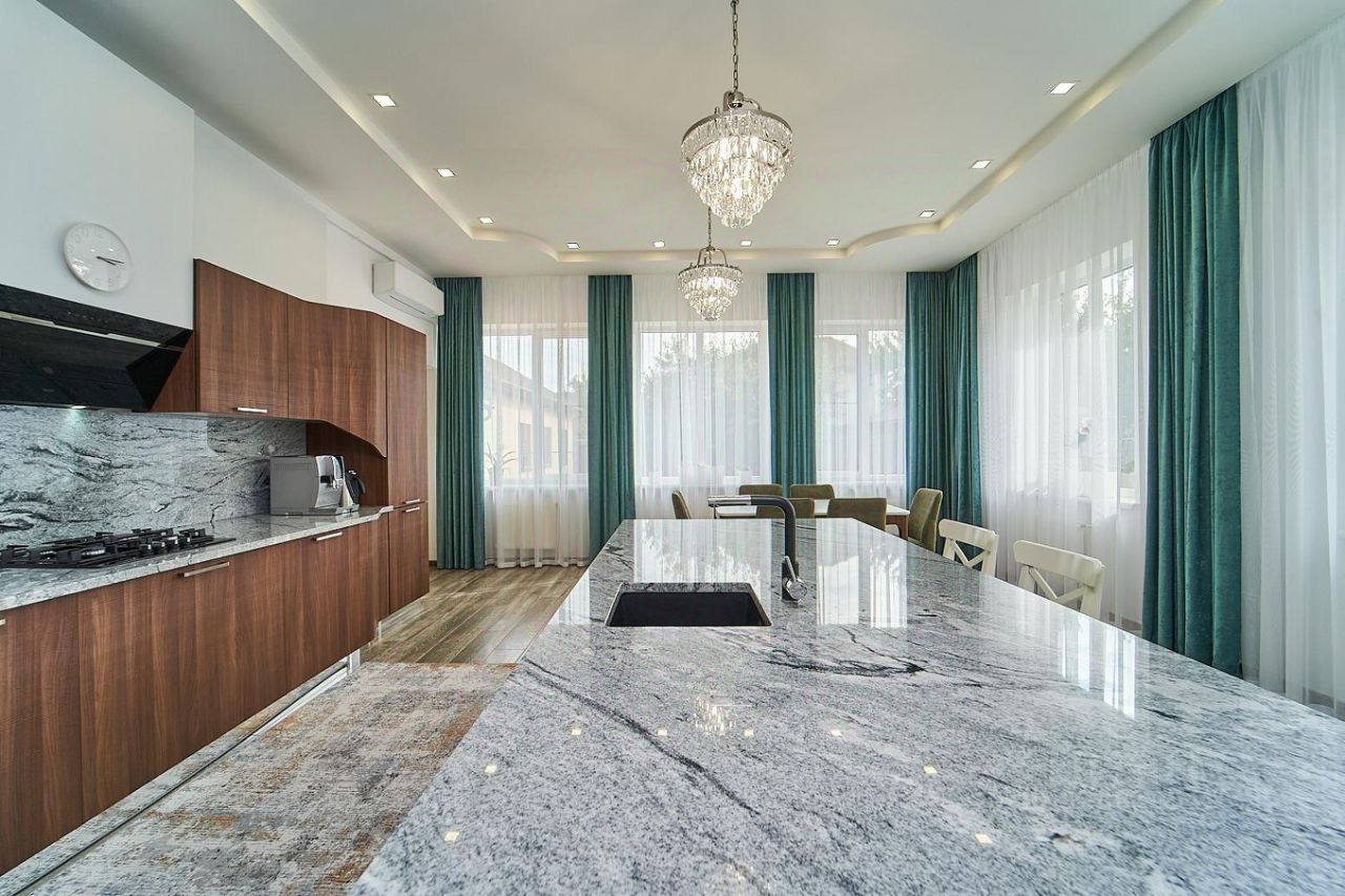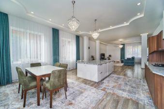 В доме выполнен Ремонт из дорогостоящих материалов Европейских производителей (кухонный гарнитур и осветительные приборы в доме производства Италии, столешница, фартук кухни и острова выполнены из натурального камня Индия. Сплит системы фирмы General. Лестничные перила художественная ковка мастера международного уровня. Двери из массива ясеня. По периметру первого этажа система тёплый пол. Дом очень светлый, просторный, Продуманный дизайн. Вся Мебель и Техника остаются Новым хозяевам.