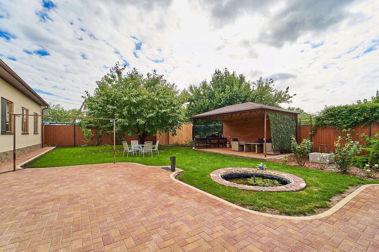 Земельный участок 9 соток с правильной эргономикой: Основной дом280м2 в 2х этажах, гараж 71м2 на 3 машиноместа с въездной группой фирмы Херманн и два парковочных места. Перед фасадом дома разбит молодой виноградник. На заднем дворе расположены Гостевой дом 83,5м2 и Баня 23 м2, Зона барбекю с мангалом и беседкой для отдыха, небольшой пруд и современная зеленая зона с ландшафтным дизайном, есть место под Бассейн. Коммуникации все Центральные, На участке имеется автополив, при въезде автоматические ворота.