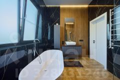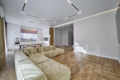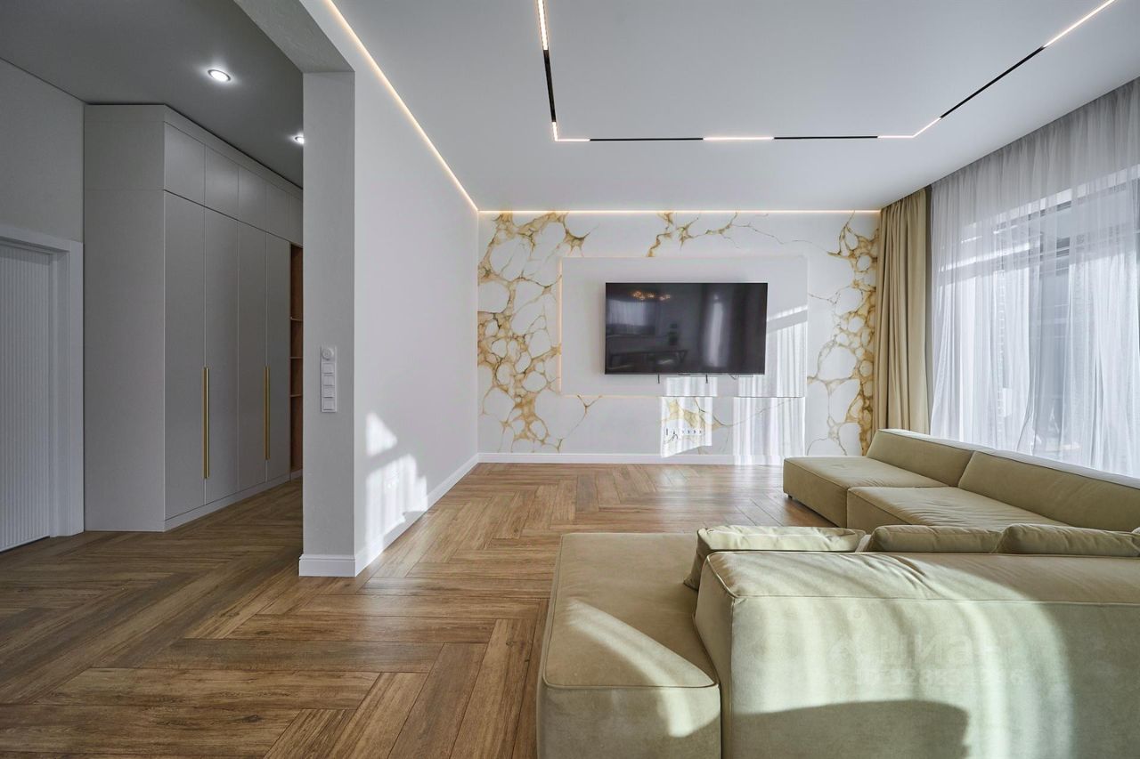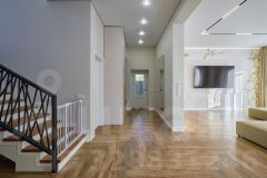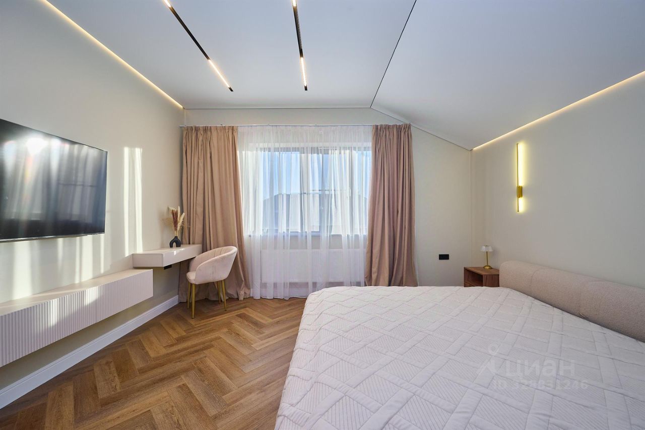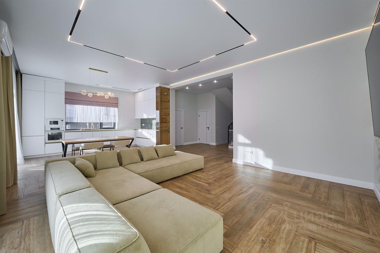 Ремонт выполнен по дизайн проекту, из качественных материалов : на 1 этаже напольное покрытие - керамогранит, на 2 этаже напольное покрытие - кварцвинил, стены окрашены дорогостоящей краской натурального оттенка. Лестница выполнена из массива ясеня. В доме техника европейских производителей, мебель выполнена на заказ. Столешница на кухне из натурального камня. По всему дому система "умный дом".
