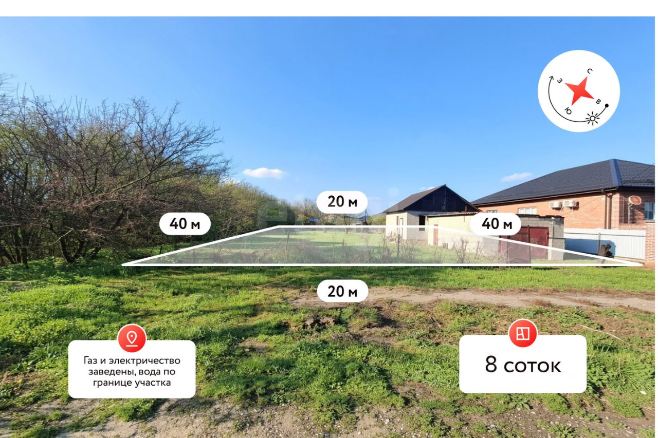 Предлагается к продаже ровный земельный участок площадью 8 соток, размер 20*40 м, расположенный в г.Славянске-на-Кубани.