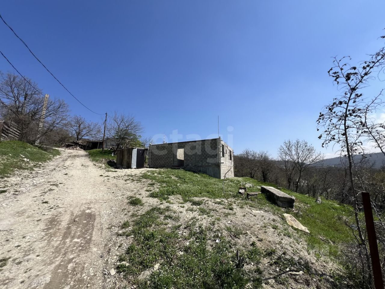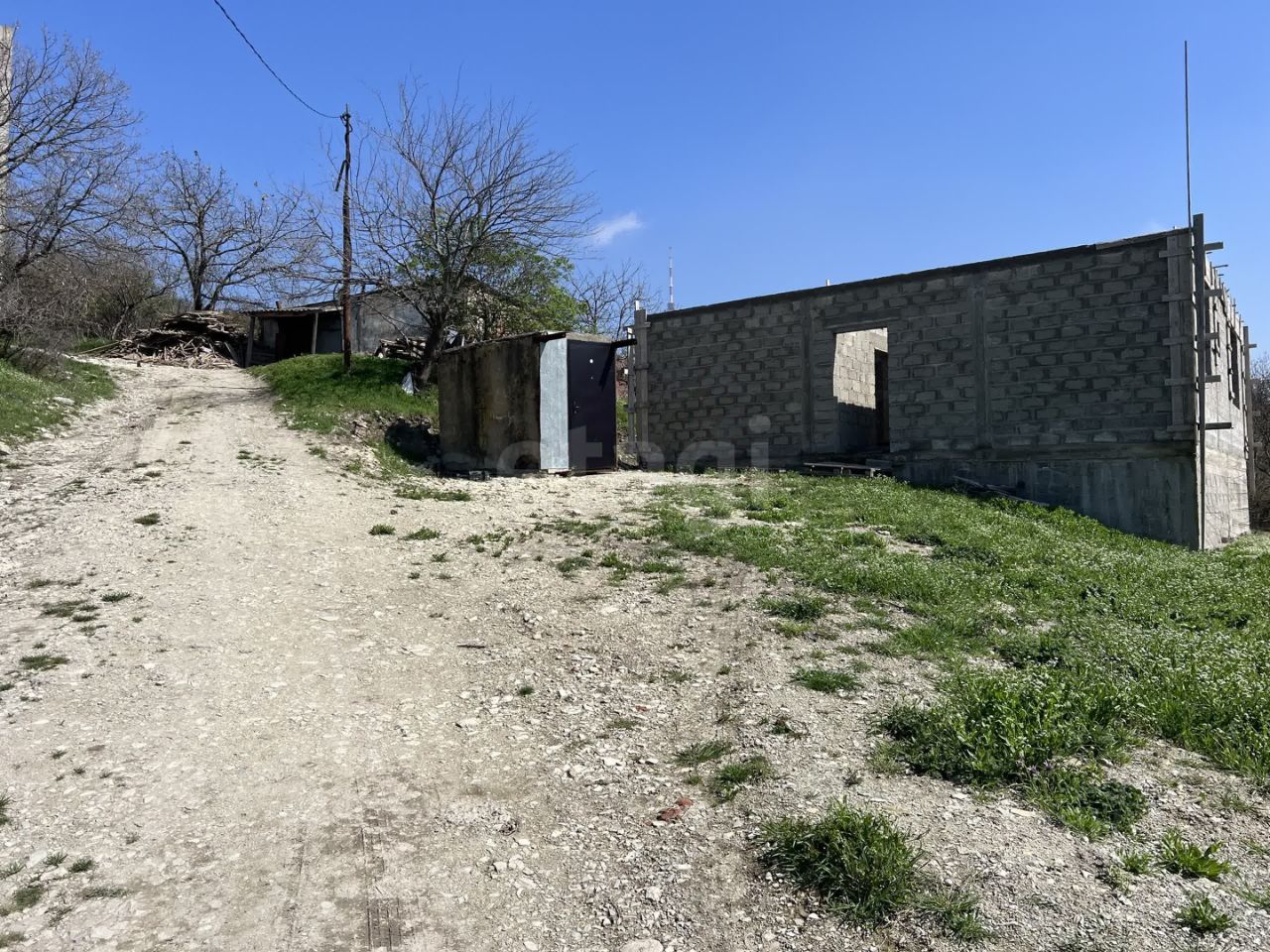 На участке расположено недостроенное капитальное строение 100м2, без крыши и окон, на кадастре не стоит.