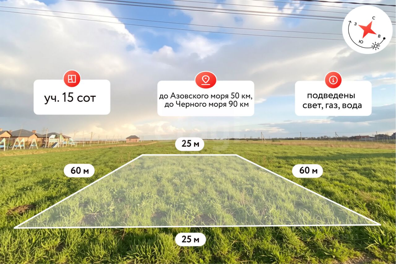 Земельный участок площадью 15 соток с фасадом 25 метров, подходит под Семейную ипотеку.