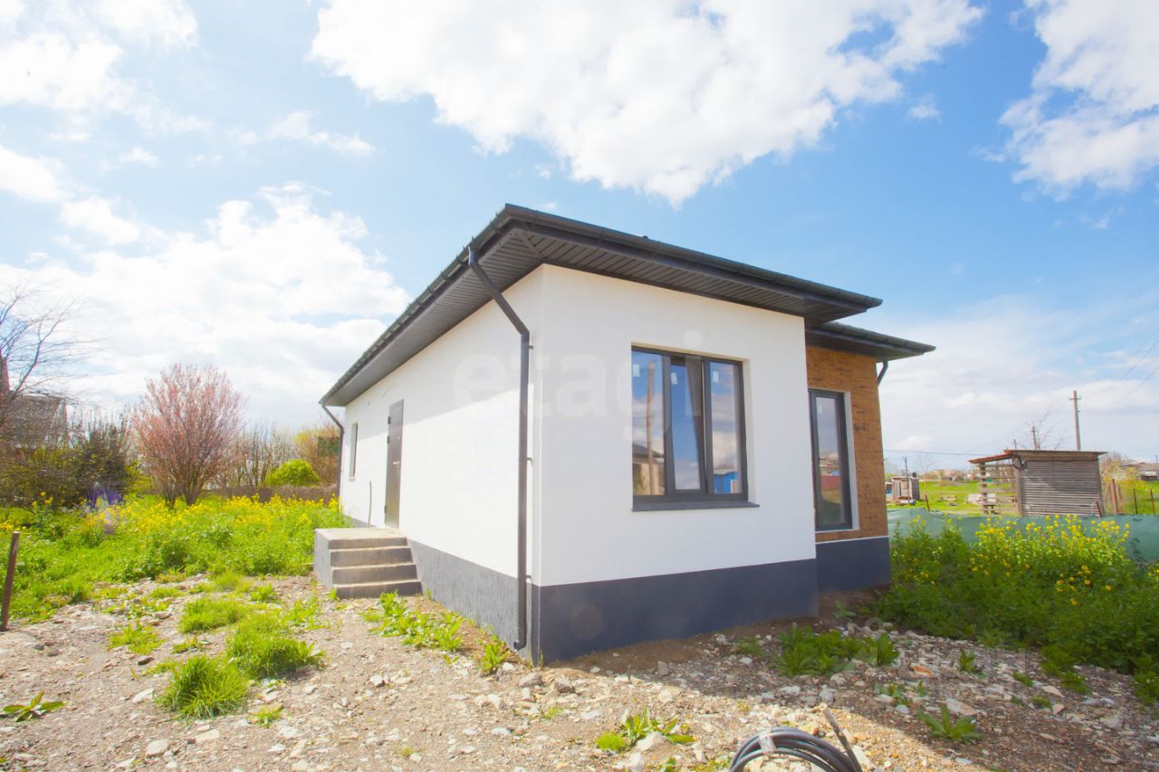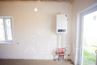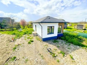 Дом в предчистовой отделке подключен ко всем коммуникациям. Установлены газовый котел, система теплых полов, натяжные потолки. Планировка включает три изолированные комнаты и просторную кухню-гостиную с выходом на террасу.