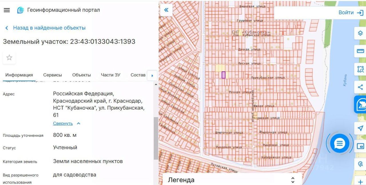 Кадастровый. 23:43:0133043:1393 Адрес: Российская Федерация, Краснодарский край, г. Краснодар, НСТ "Кубаночка",