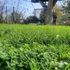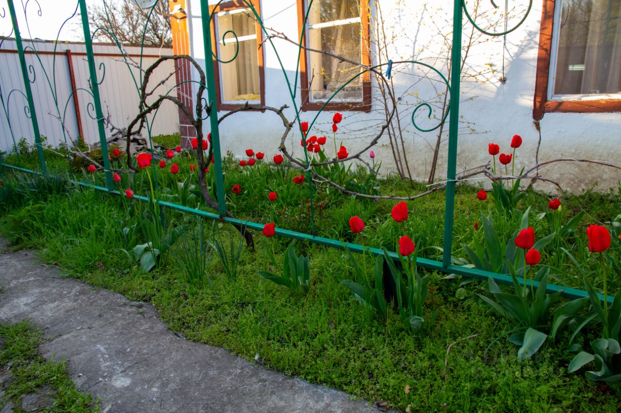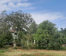 В саду много фруктовых деревьев (яблони, абрикосы, сливы, алыча, черешня, вишня, груши, айва, шелковица) и очень много винограда разных сортов. Есть зона барбекю с беседкой и домик на дереве. Площадь земельного участка 27 кв. м.