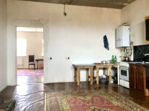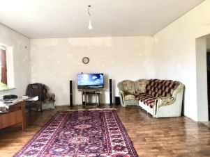 Дом строили для себя, собственник проживает в доме 10 лет. В доме большие комнаты, которые при желании ещё можно зонировать, сан. узел, кухня. В сан. узле и коридоре тёплые полы. В доме выполнен частичный ремонт, на первом этаже стены подготовлены под поклейку обоев, на втором полностью предчистовая отделка. Широкая бетонная лестница на второй этаж отделанная дагестанским камнем.