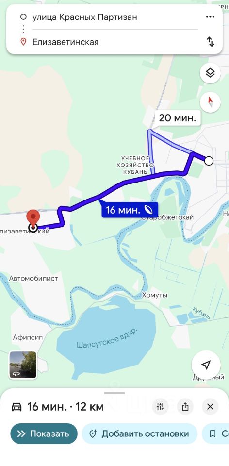 P.S. На карте показано расположение участка по отношению к реке КУБАНЬ. Также указано расстояние от Ул. Красных партизан до участка - 20-30 мин на машине в будние дни.