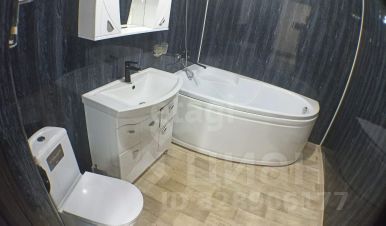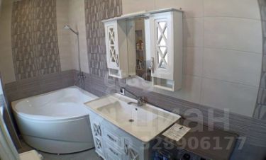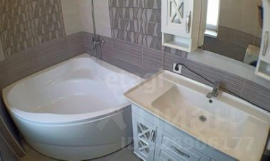 Санузел оборудован угловой акриловой ванной 160х160, стильным умывальником с тумбой, шкафом с зеркалом и унитазом с гигиеническим душем. Вся сантехника в отличном состоянии. Отделка качественной, современной плиткой, потолок натяжной со встроенными светильниками.