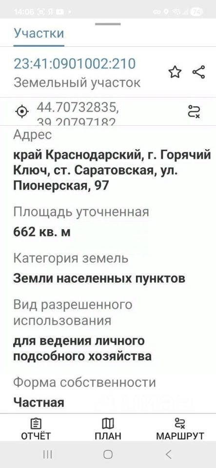 Арт. 134374708 В ст. Саратовская города Горячий Ключ продается земельный участок площадью 6,6 соток. Участок правильной конфигурации. Коммуникации: газ, свет, вода центральные, канализация-септик. Назначение земли: земли населенных пунктов, для ведения личного подсобного хозяйства.Звоните, ответим на все интересующие вопросы. Просмотр возможен в любое время, по предварительной договоренности.