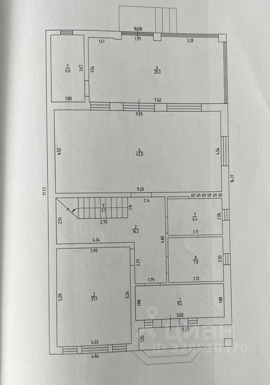 Высота потолков 3.5 м, электричество 15 кВт. Все коммуникации центральные.