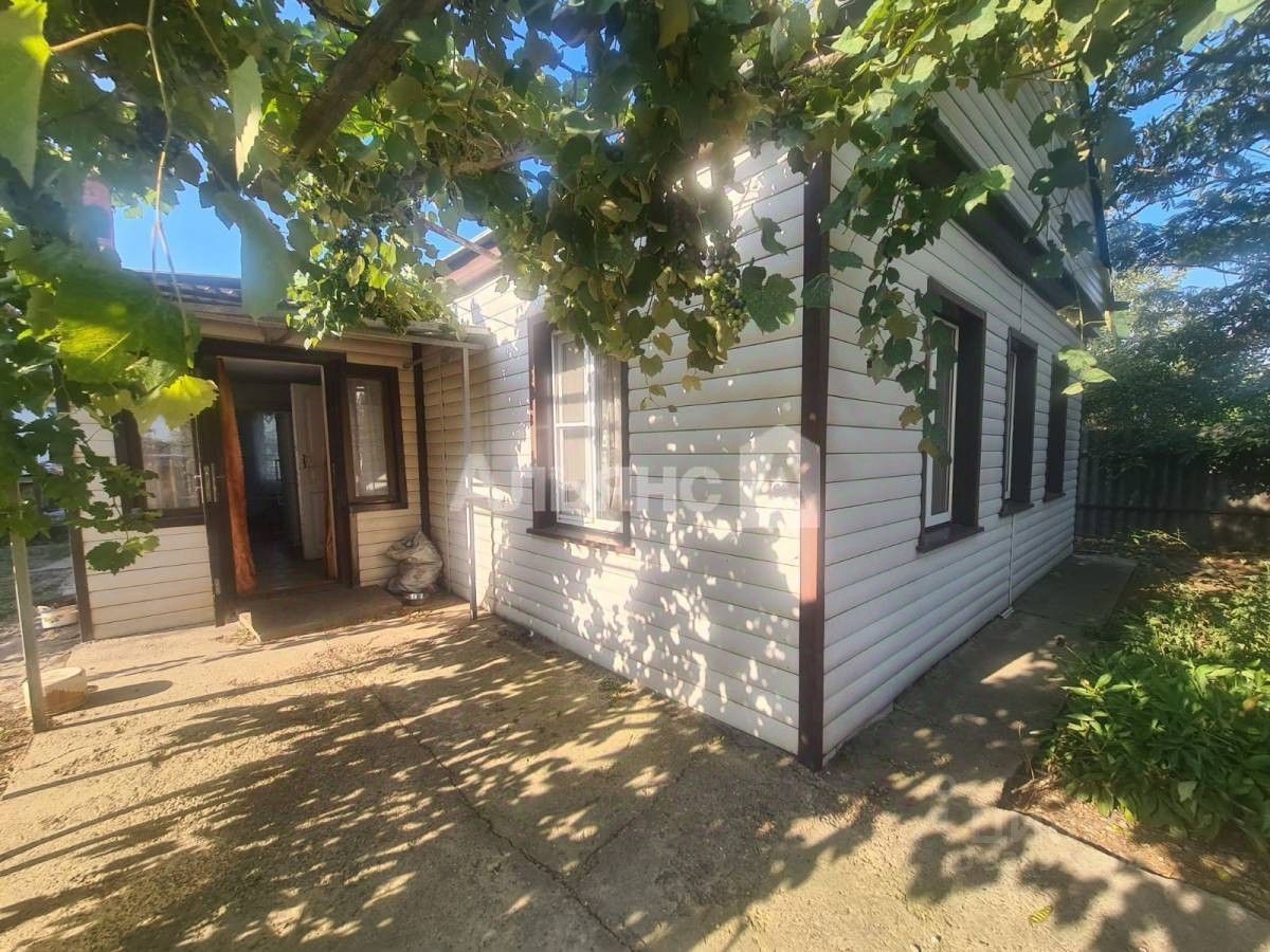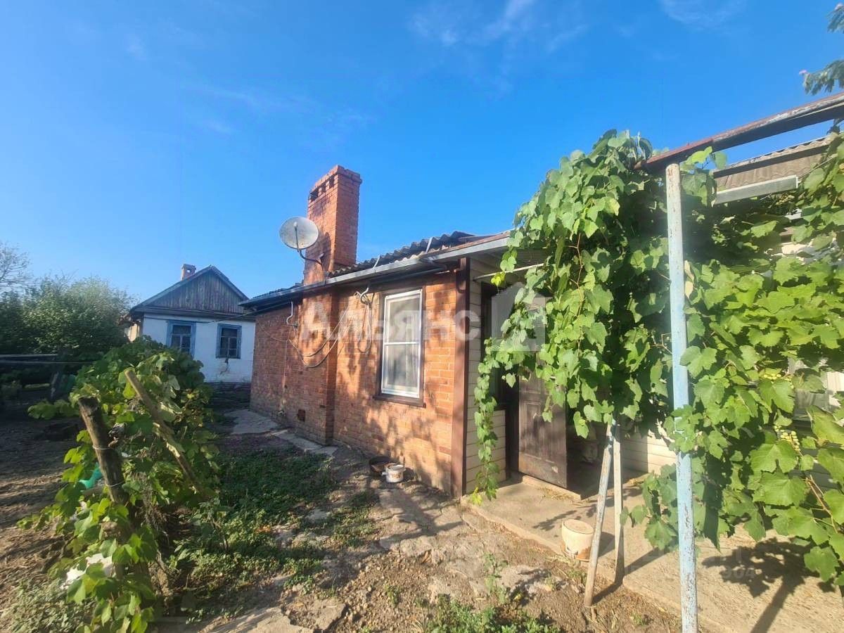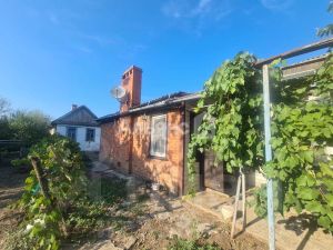 Площадь саманного дома составляет 56 квадратных метров. Дом обшит сайдингом по фасаду. Кухня и ванна пристроена из кирпича. Особенностями планирования дома являются: 4 комнаты (2 изолированные), кухня, совмещенный санузел. Коммуникации: газ, свет, центральный водопровод, скважина. Все трубы в доме поменяны. Участок площадью 36.8 сот.. На территории земельного участка имеется летняя кухня (кирпичная), сарай (кирпичный), 2 саманных сарая (под снос). Летняя кухня отапливается грубой. Состоит из кухни и комнаты. В огороде посажены плодовые деревья. При входе во двор навес из винограда нескольких сортов. Двор имеется, машина поместится, въезд заборос не предусмотрен, необходимо замена ворот.