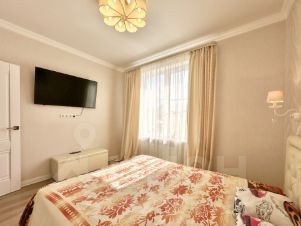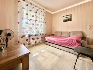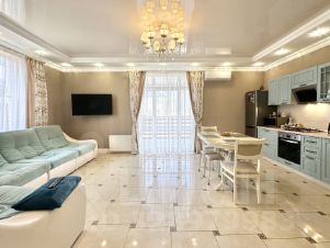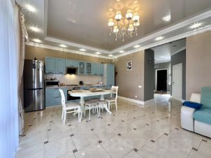 - хороший ремонт, на полу керамогранит и ламинат, на стенах обои нейтрального оттенка, потолки натяжные, точечные светильники, большая часть мебели остается новому хозяину,