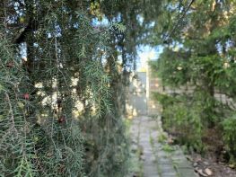 - На участке — бетонный бассейн (готов к благоустройству), теплица, множество плодовых и хвойных насаждений.