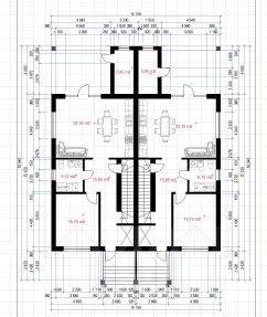 Заложен армированный фундамент с подвальным этажом. Составлен проект на постройку дуплекса общей площадью 275м2 с учётом имеющегося фундамента и документации.
