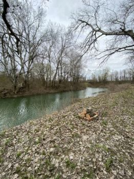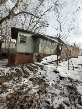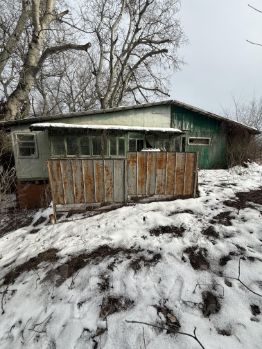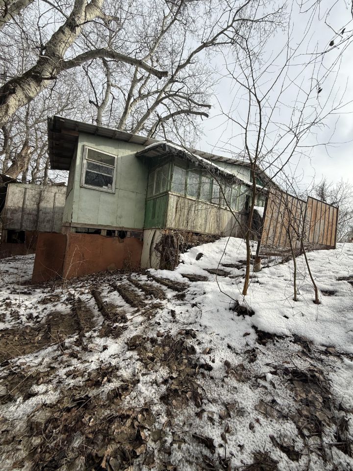 На меньшем участке дом на берегу реки, площадью 38.3 кв. м. требует ремонта, перекрыли крышу новым шифером. Дом оформлен.