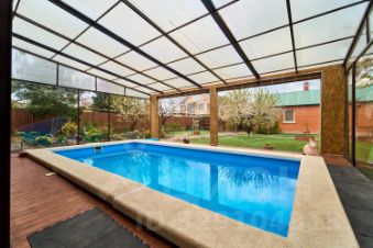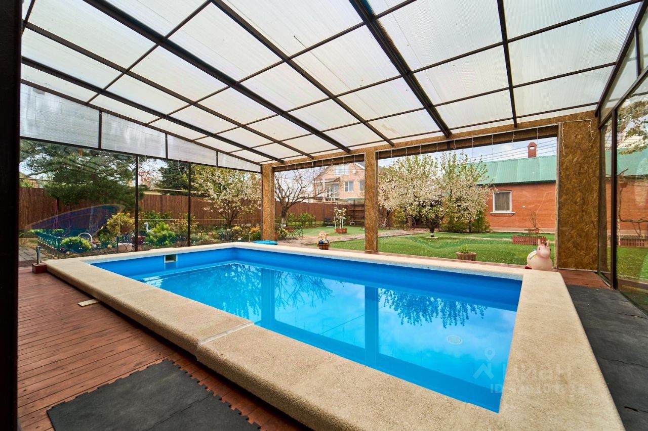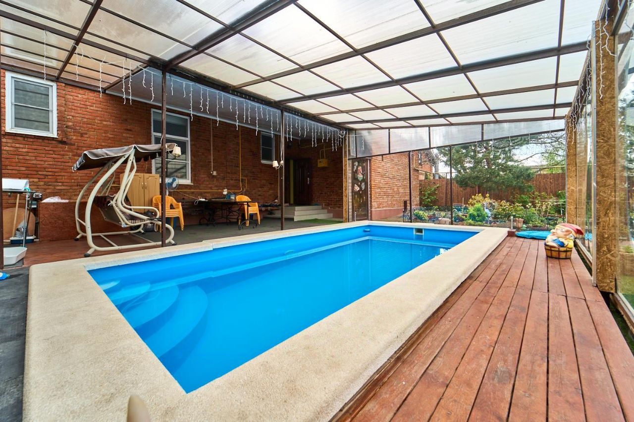 Инфраструктура участка продумана для комфортной жизни и отдыха: под навесом расположен стационарный бассейн размером 36 метров, оборудована баня площадью 50 м² с купелью и гостевым домом, имеется тёплый гараж и дополнительный навес для автомобиля. Также установлен подвал и система видеонаблюдения. Удобный выезд возможен сразу на две улицы.