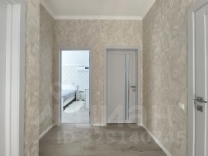 - В просторной кухне гостиной кухонный гарнитур со встроенной техникой.