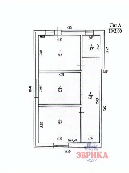 общая площадь - 57.2 м²;