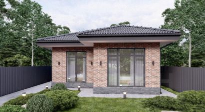 в доме три комнаты 12,38+ 13,08+11,66 м2, столовая-гостиная 39 м2 с выходом на террасу 15,5 м2, гардеробная, кладовая, два санузла.