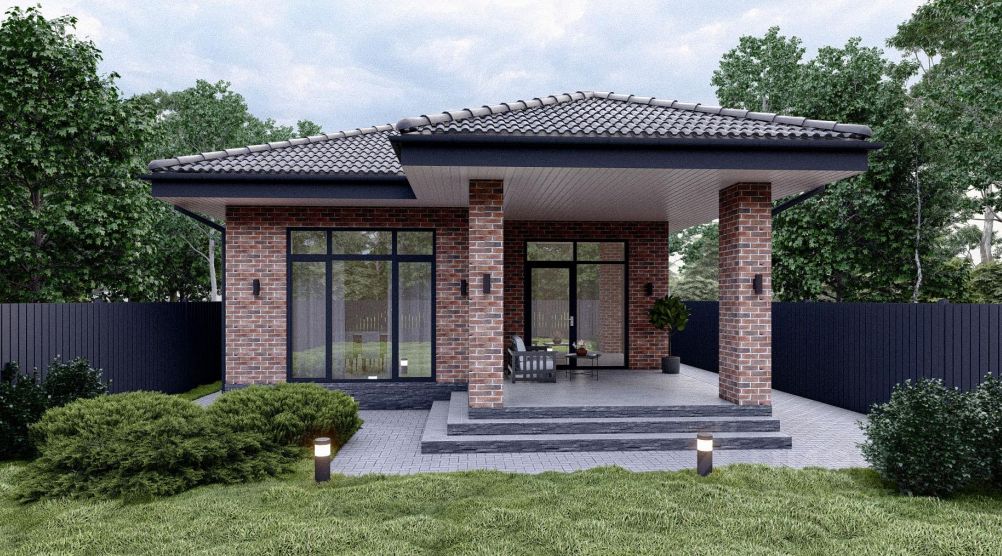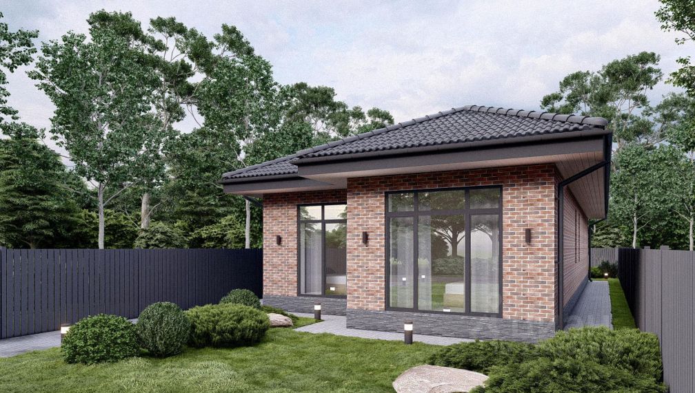 Крыша - многоскатная. Покрытие металлочерепица. Водосточная система пластиковая.