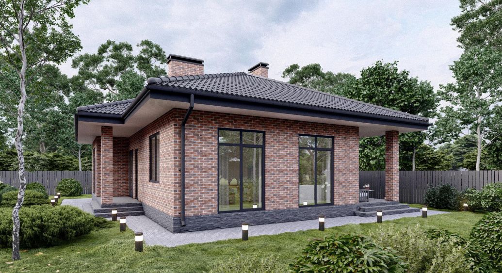 Крыша - многоскатная. Покрытие металлочерепица. Водосточная система пластиковая.