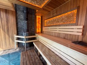 На ухоженном участке ИЖС находятся не только основной дом, но и уютный гостевой дом площадью 80 м². Здесь вас ждёт зона барбекю, а также роскошная сауна с выходом к бассейну и джакузи — идеальное место для расслабления после насыщенного дня.