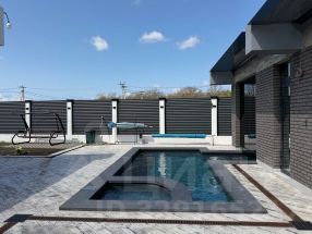 По периметру участка установлен капитальный забор с подсветкой, что обеспечивает безопасность и приватность. Установлена лазерная система охраны.