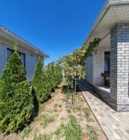 Гостевой дом (48 м²): Этот дом настоящая находка! Он полностью автономен, имеет отдельный вход и заезд с другой стороны участка. Это идеальное решение для сдачи в аренду (посуточно или на длительный срок), а также для размещения гостей, которые смогут наслаждаться своим личным пространством. Внутри спальная комната, кухня-гостиная, совмещенный санузел и просторная прихожая.