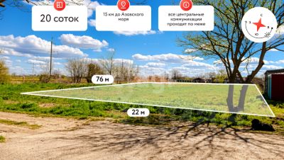 Участок площадью 20 соток, правильной прямоугольной формы, ровный, без неоформленных построек, ухоженный, находится в неподтопляемой зоне, на жилой улице. Участок является угловым, есть возможность размежевать на три ровных участка.