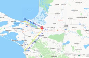 23 км. до г. Темрюк, 35 км. до станицы Голубицкая с ракушечными пляжами Азовского моря, 85 км. до Крымского моста и станицы Тамань, 55 км. до города-курорта Анапа.