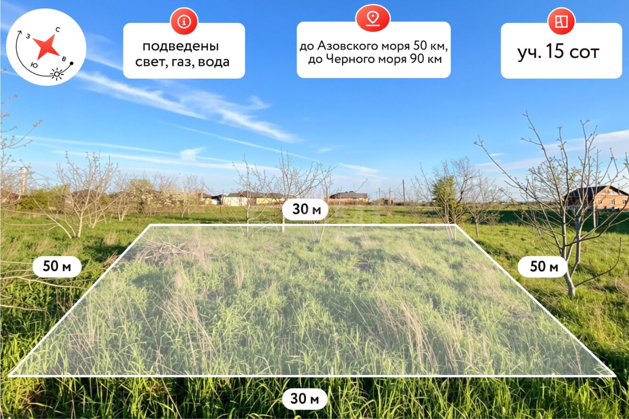 Земельный участок площадью 15 соток с фасадом 30 метров, подходит под Семейную ипотеку.
