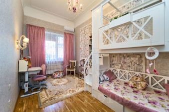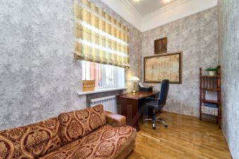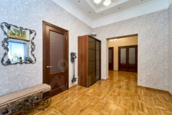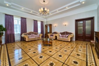 В зале и в спальнях шикарный паркет в идеальном состоянии. Все межкомнатные двери из натурального дерева. Высота потолка первого этажа почти 4 метра. Ремонт выполнен в классическом стиле, что не потребует глобальных обновлений.