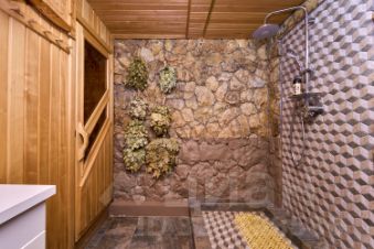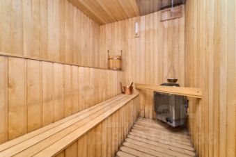 В цокольном этаже: гараж на две машины с отдельными въездами, сауна, спортивный зал, гардероб, кладовка, котельная. Из цокольного этажа, не выходя из дома, можно подняться на первый этаж.