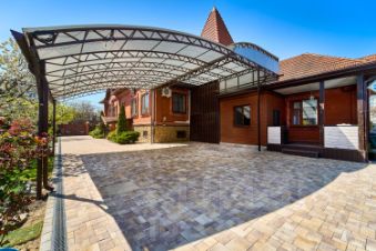 Двор вымощен плиткой , есть своя ливневая канализация во дворе, так что у вас будет всегда сухой и чистый двор.