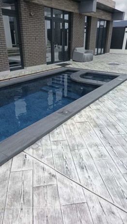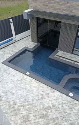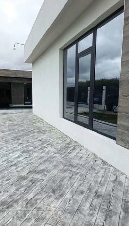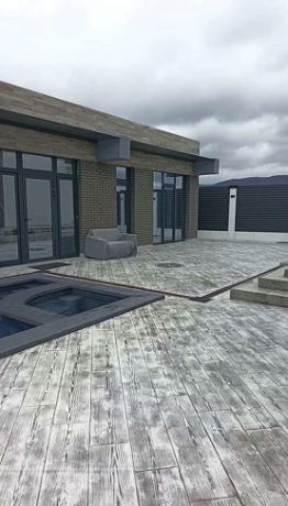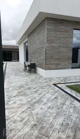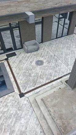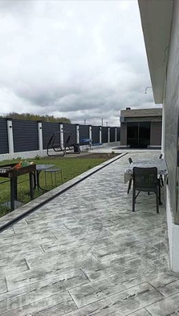 • Покрытие: Стильный и долговечный печатный бетон по всему двору., так же есть зеленые зоны